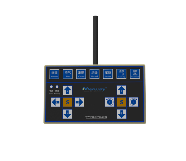 手持式示教手柄用于焊錫機的運動控制、編寫焊接程序及手動調試。
